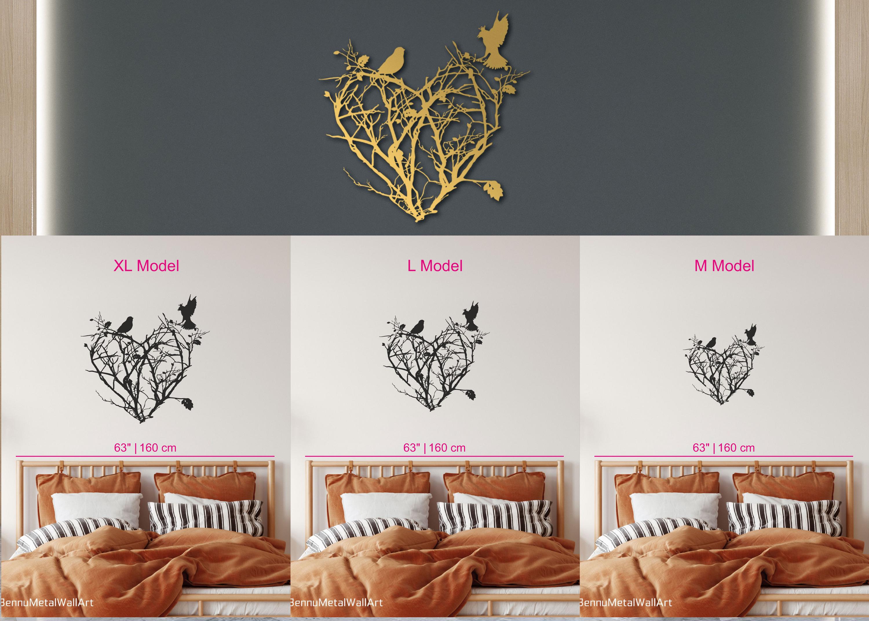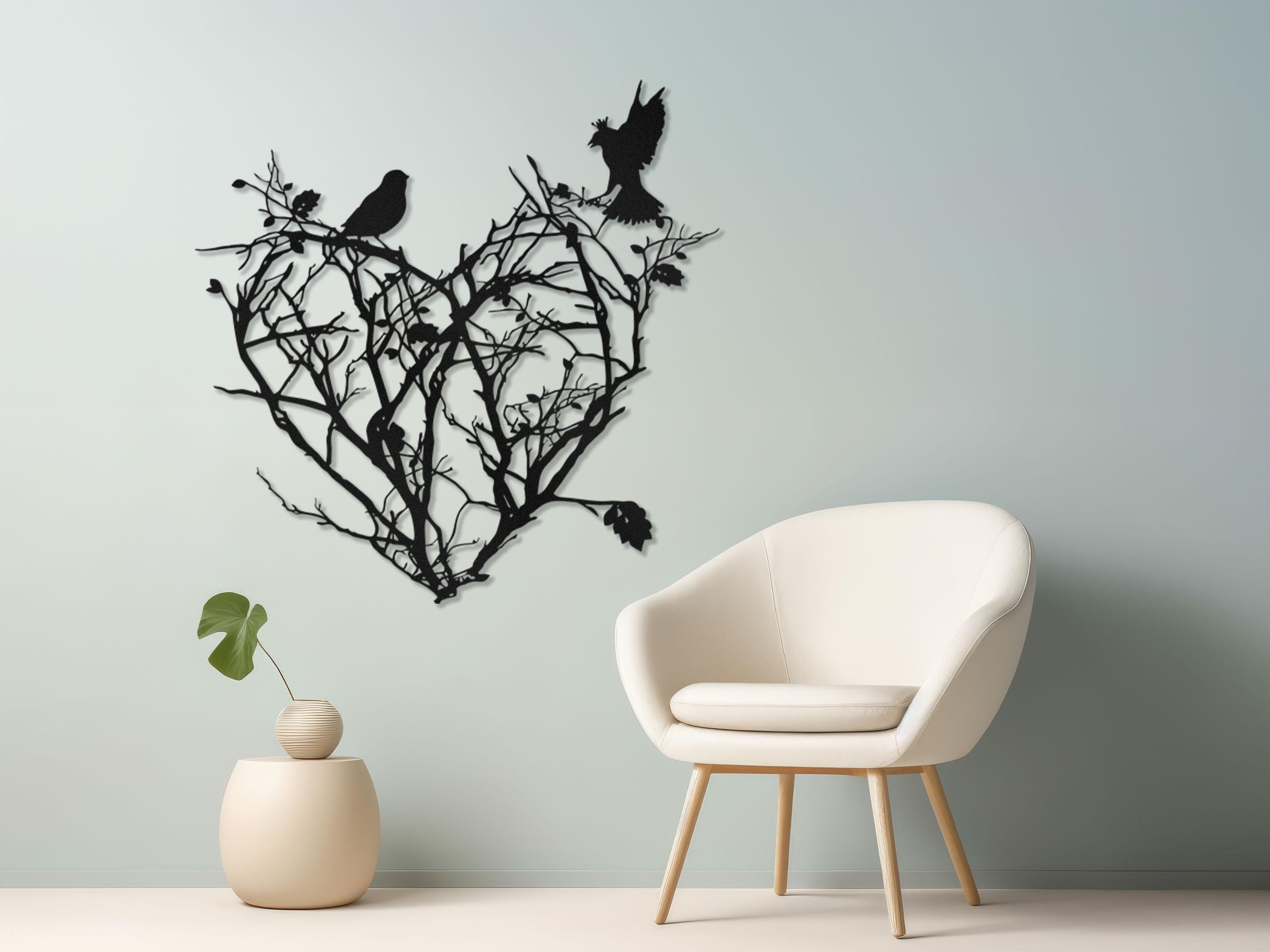 Bring warmth and romance into your home with this heart shaped bird wall art. The design combines delicate tree branches, blooming roses, and birds to form a beautiful heart silhouette that symbolizes love and harmony.