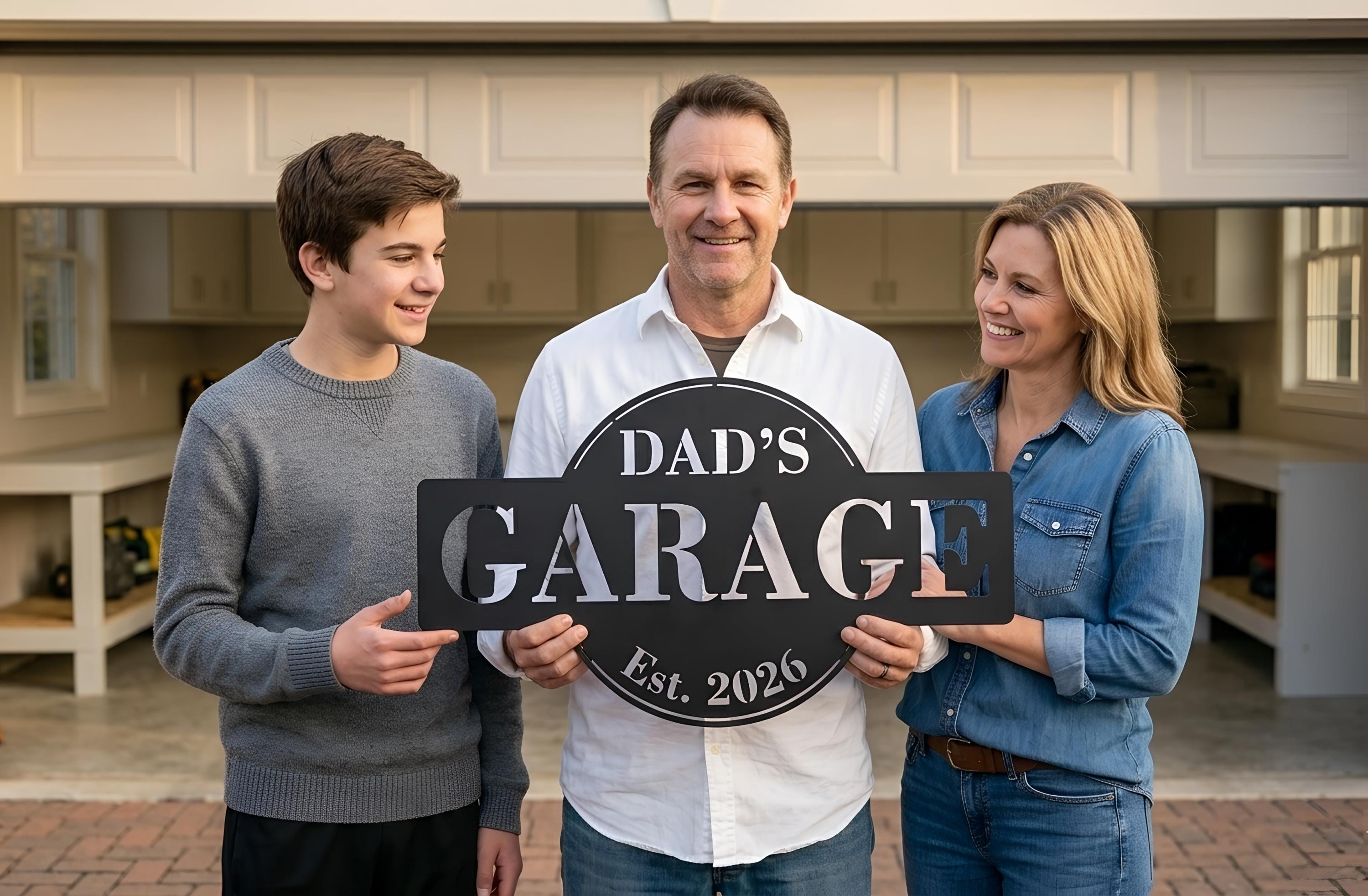 🚗 Personalized Aluminum Garage Sign for Dad’s Workshop