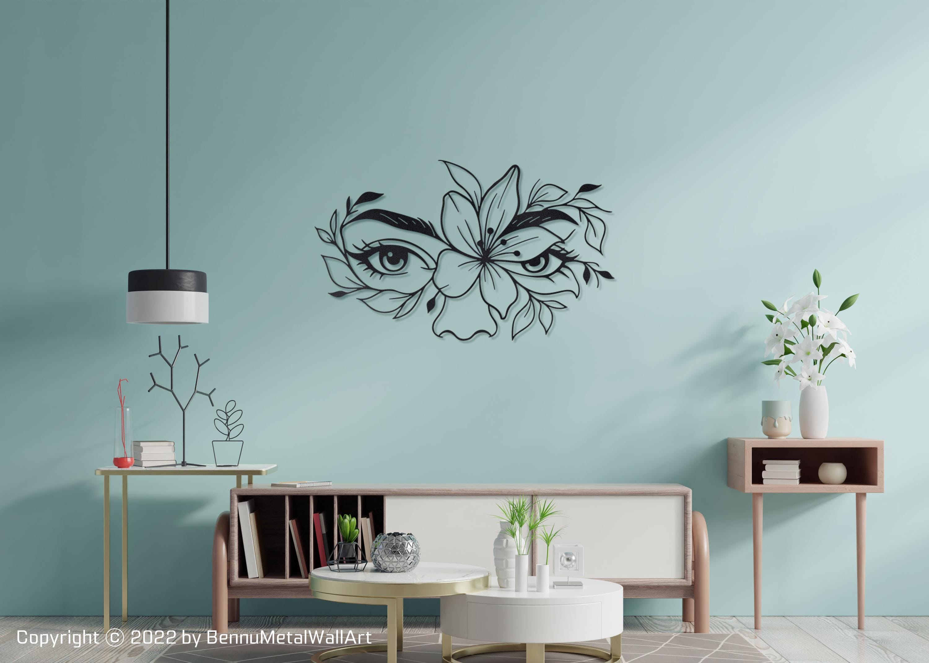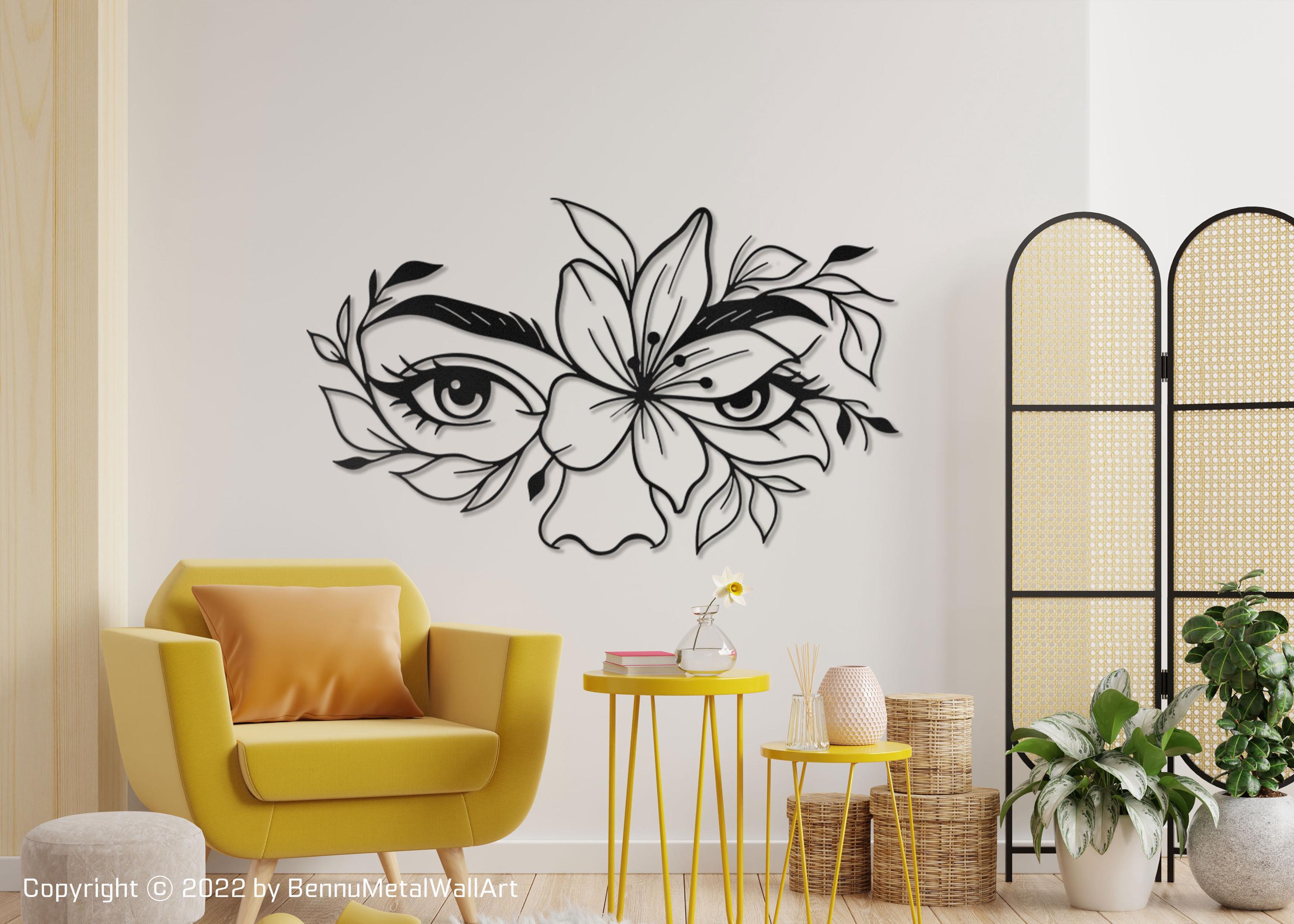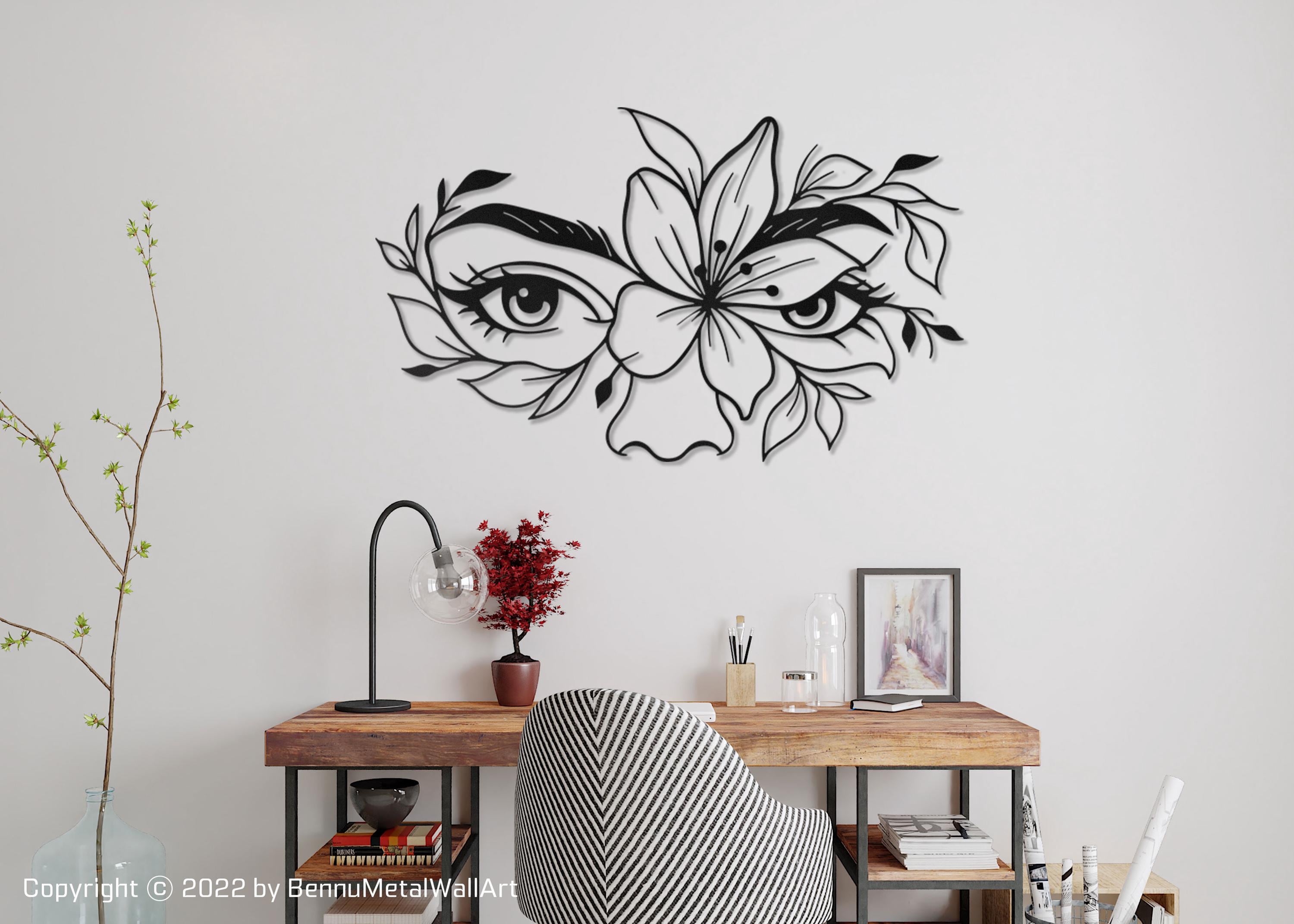 Add a touch of mystery and elegance to your space with this Floral Eyes Metal Wall Art. Featuring a captivating fusion of human expression and nature, this unique design combines detailed eyes with blooming flowers and leaves — creating a powerful yet graceful focal point for any wall.
