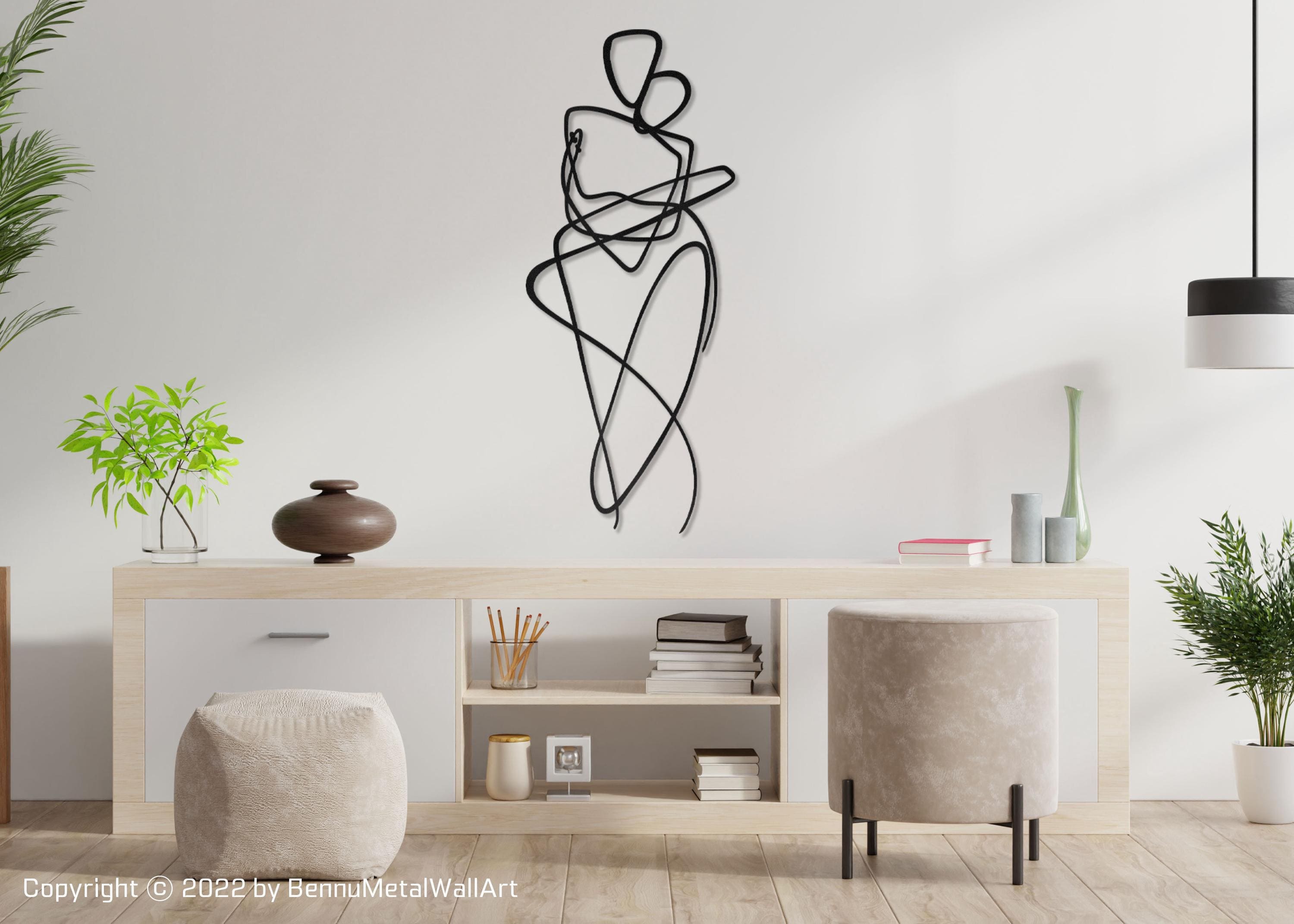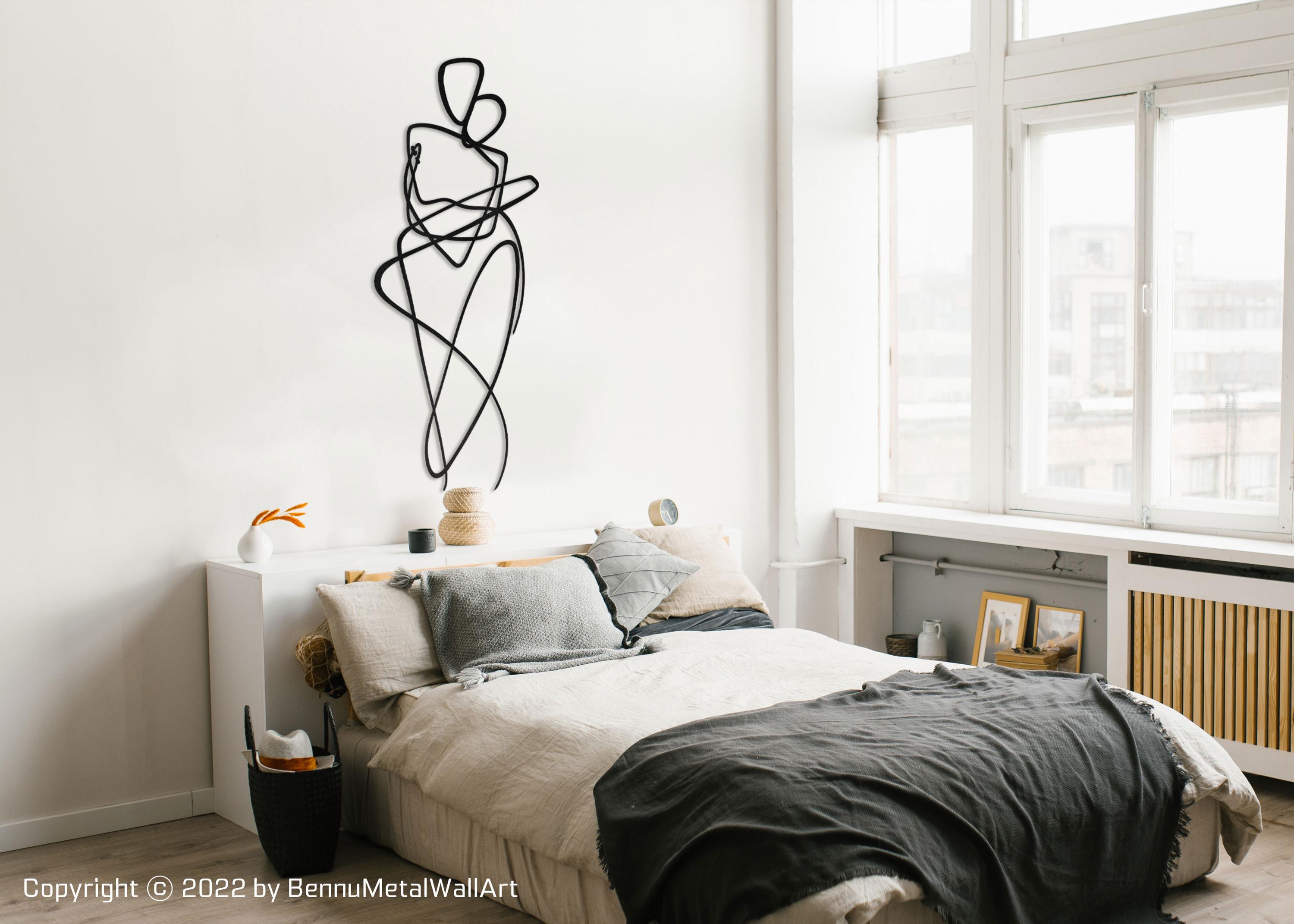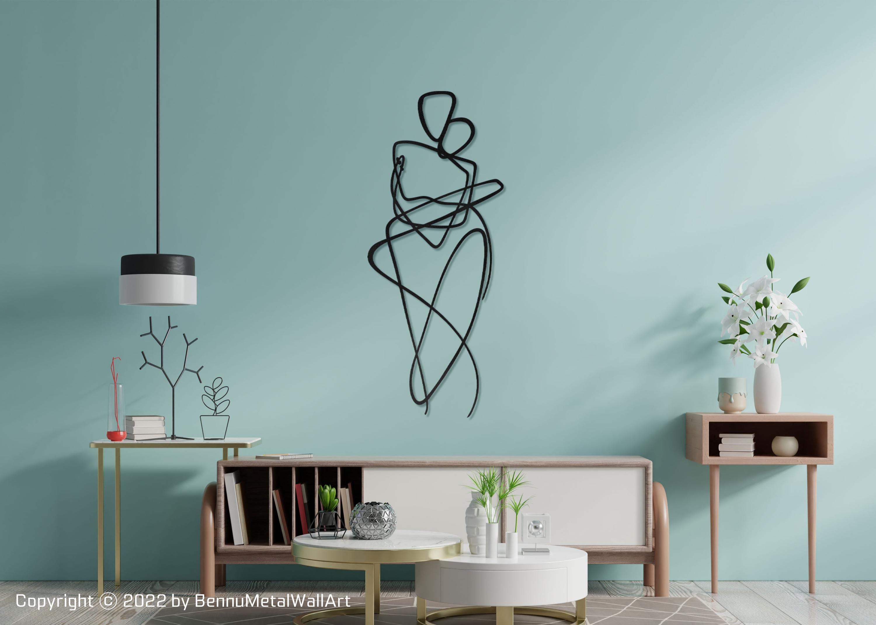 Perfect for bedrooms, living rooms, or art studios, this modern metal wall art adds a sense of intimacy and sophistication to any space. Its black matte finish complements both contemporary and rustic interiors, making it an eye-catching piece for art lovers.