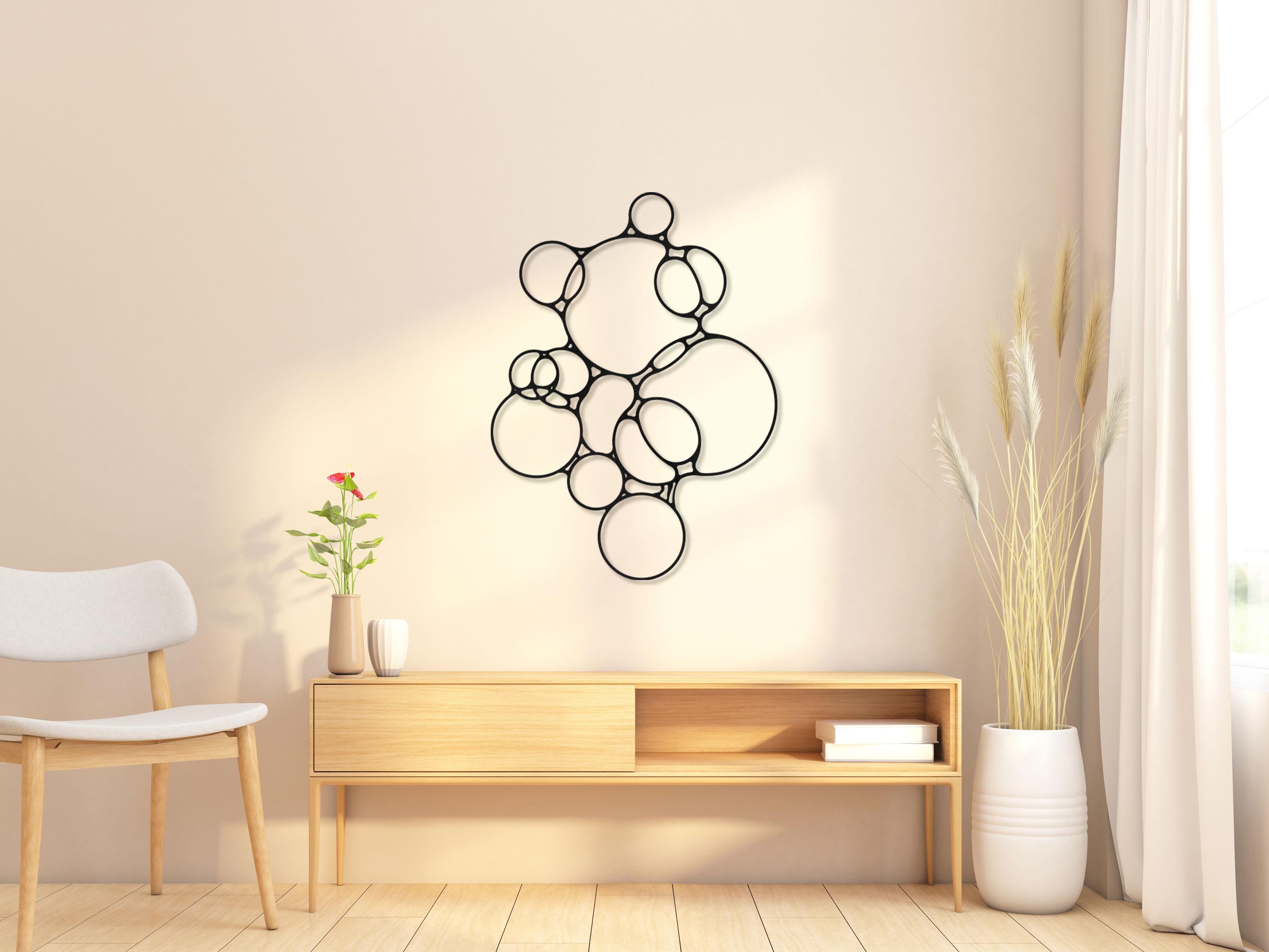 The minimalist structure works perfectly in modern living rooms, offices, or contemporary interiors where clean shapes and artistic design are appreciated. The bubble-like forms create a unique visual rhythm that brings movement and balance to any wall.