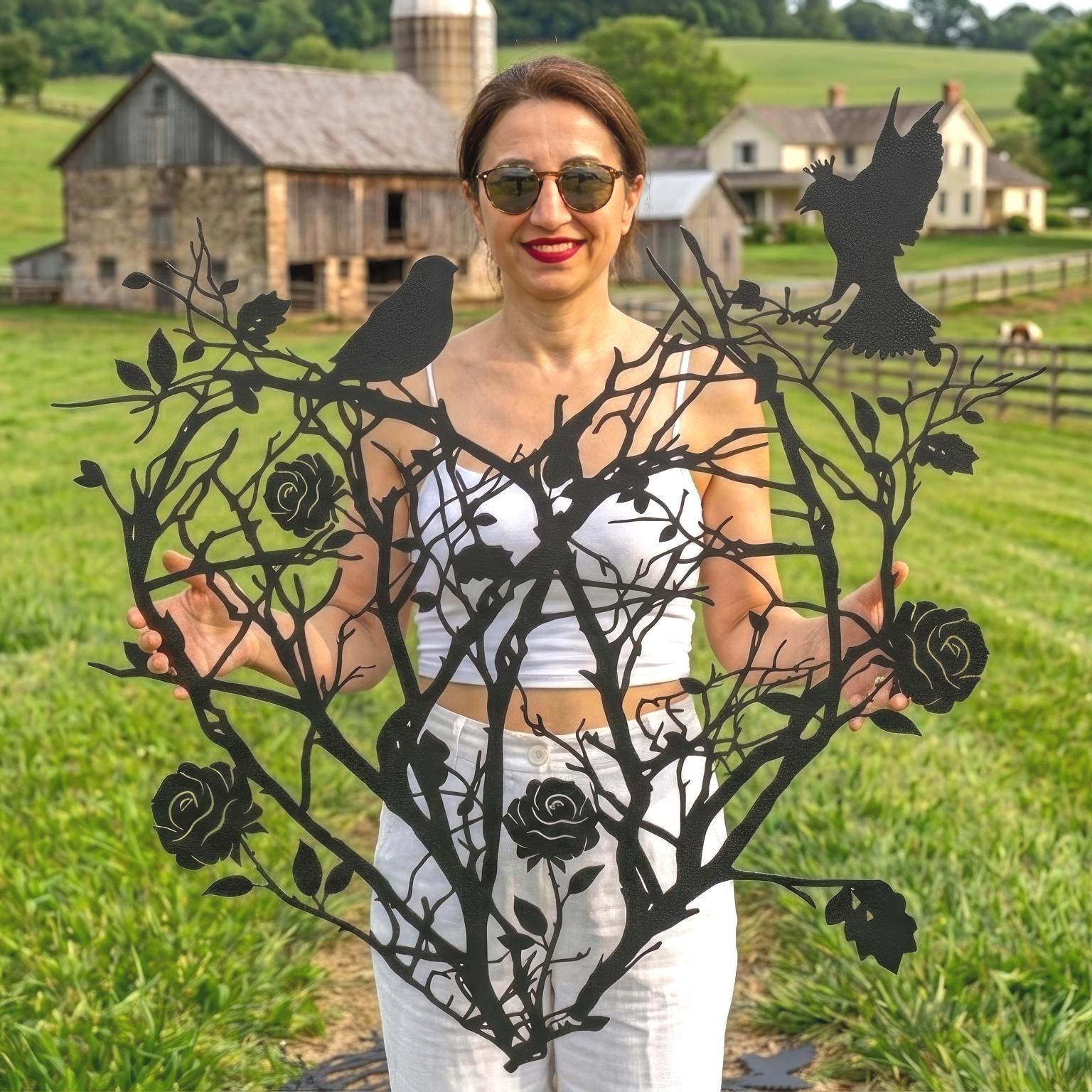 Add a romantic touch to your home with this elegant heart shaped wall art featuring delicate roses and birds. The design combines nature inspired branches with a symbolic heart shape, creating a beautiful piece that represents love, harmony, and connection.