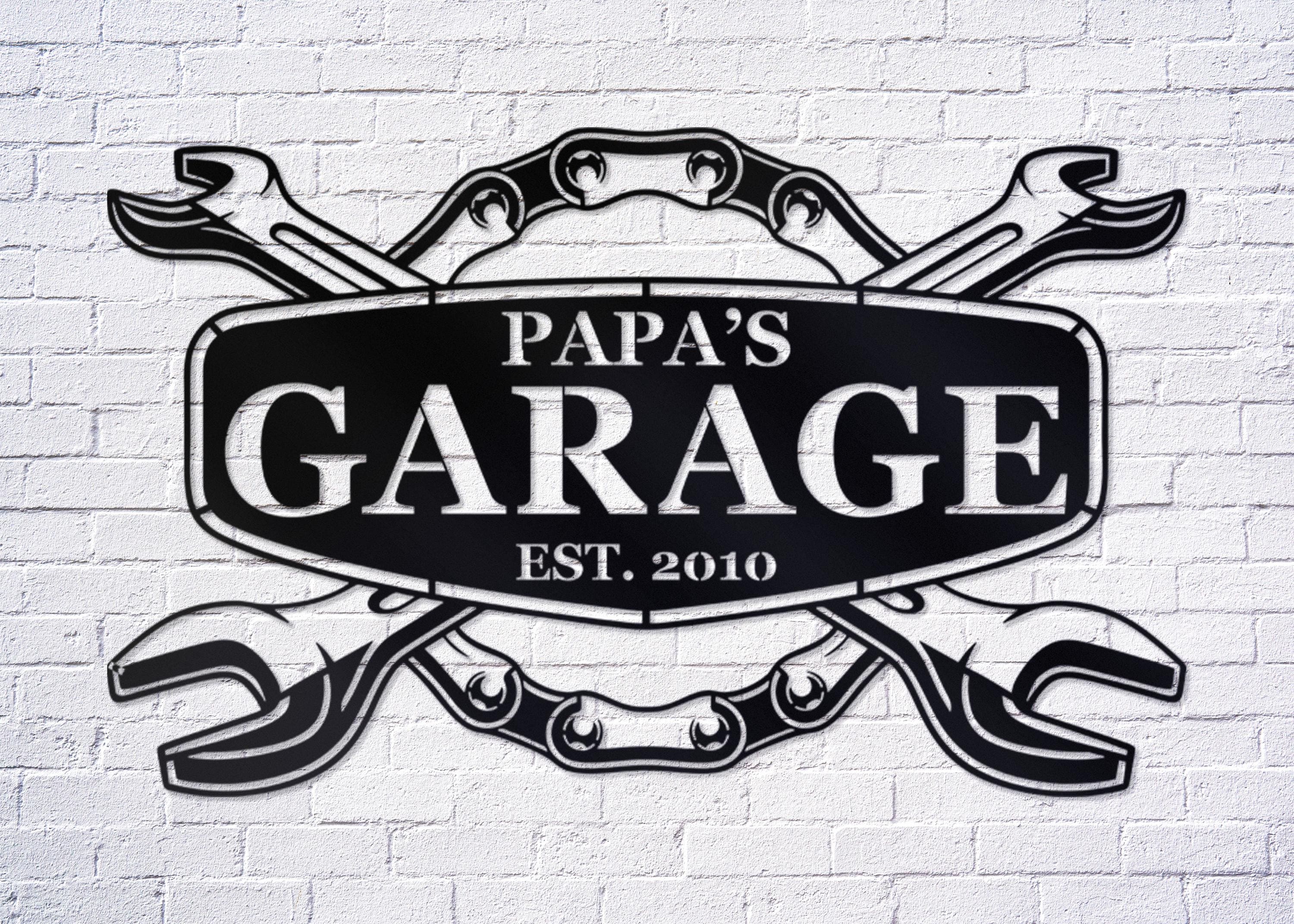 Each sign is precision cut from durable metal and finished with a clean powder-coated surface for long-lasting indoor or outdoor use. You can personalize the sign with a name, garage title, or custom text, making it a perfect gift for dads, husbands, mechanics, or car enthusiasts.