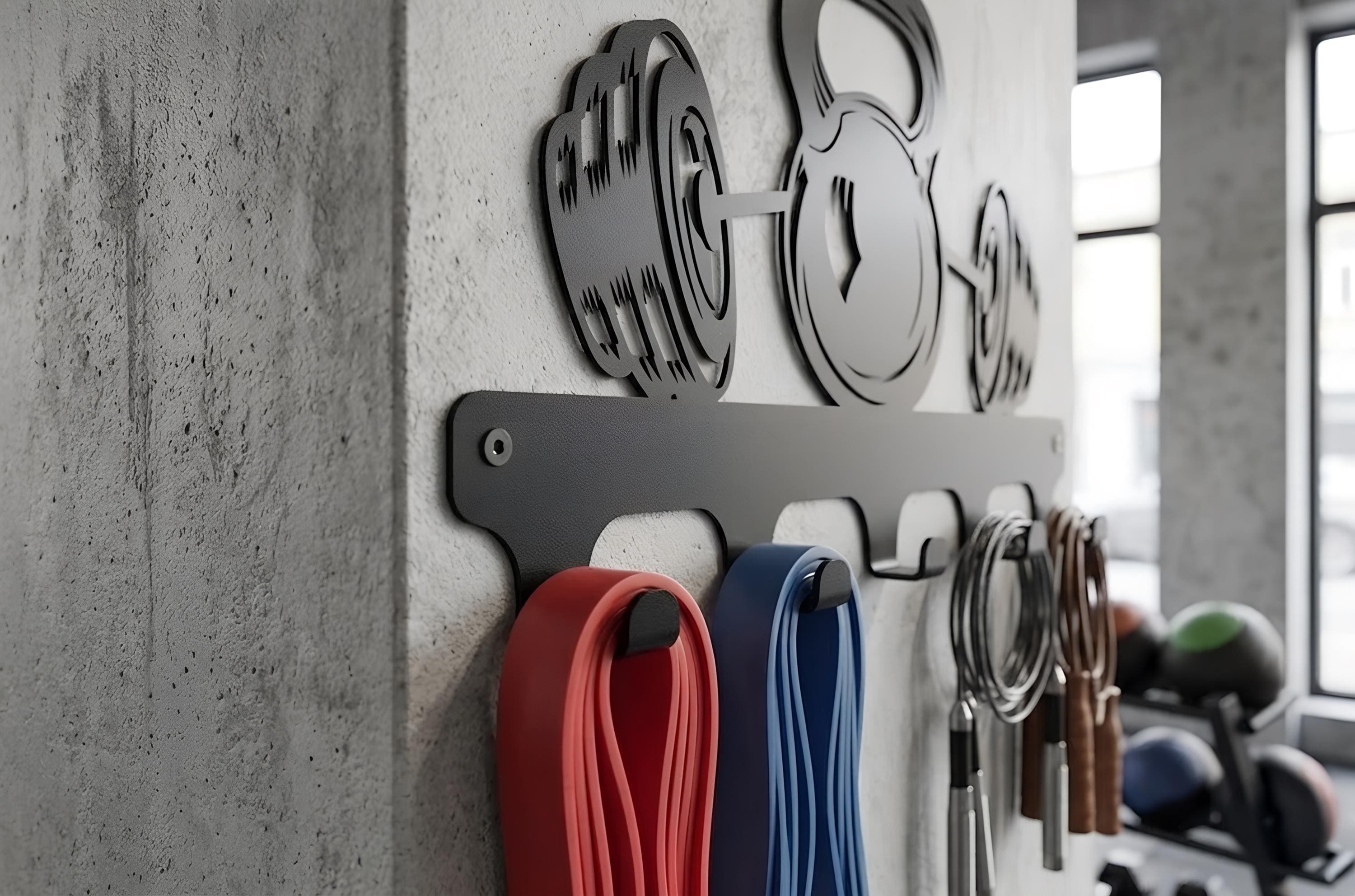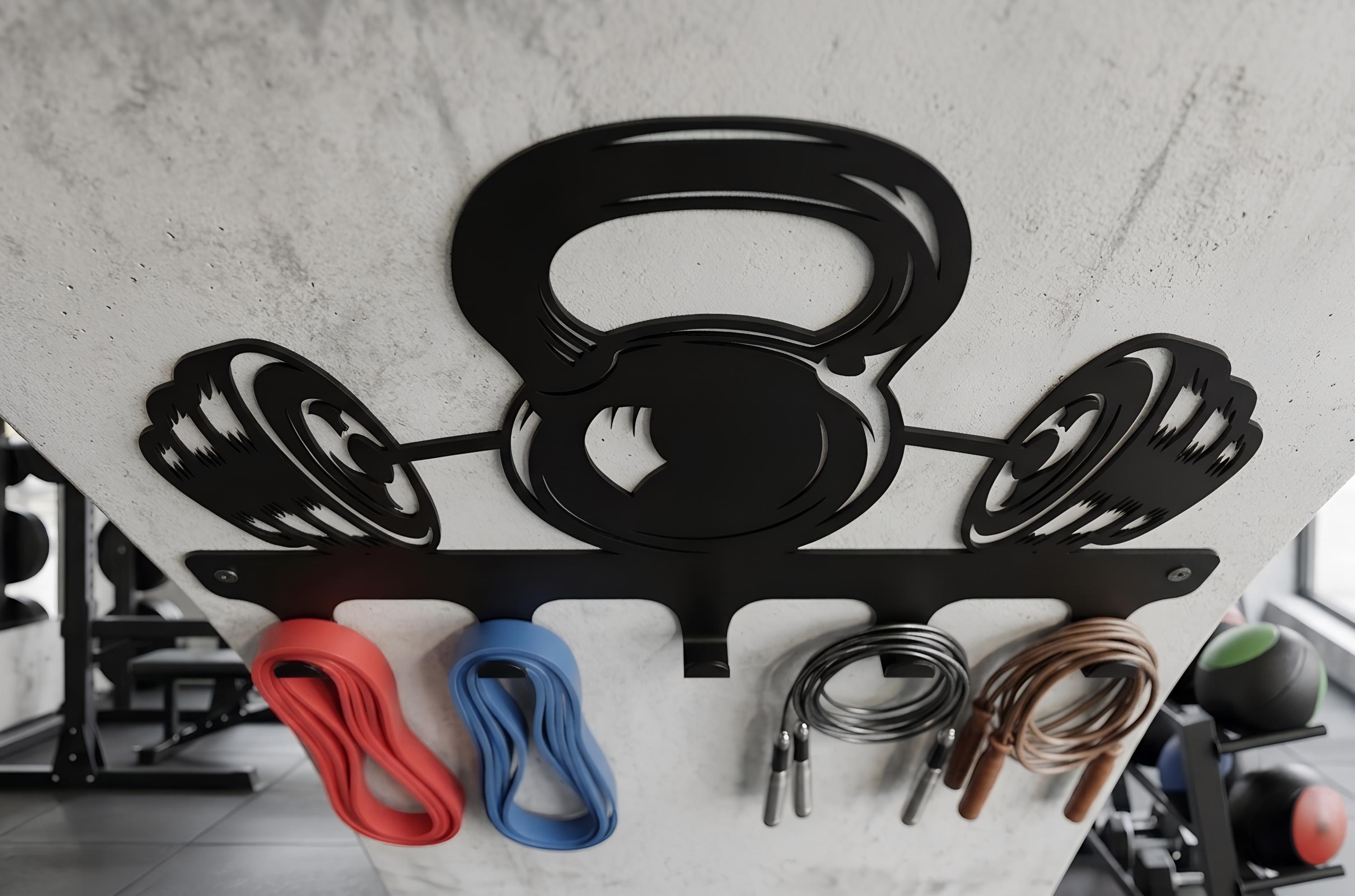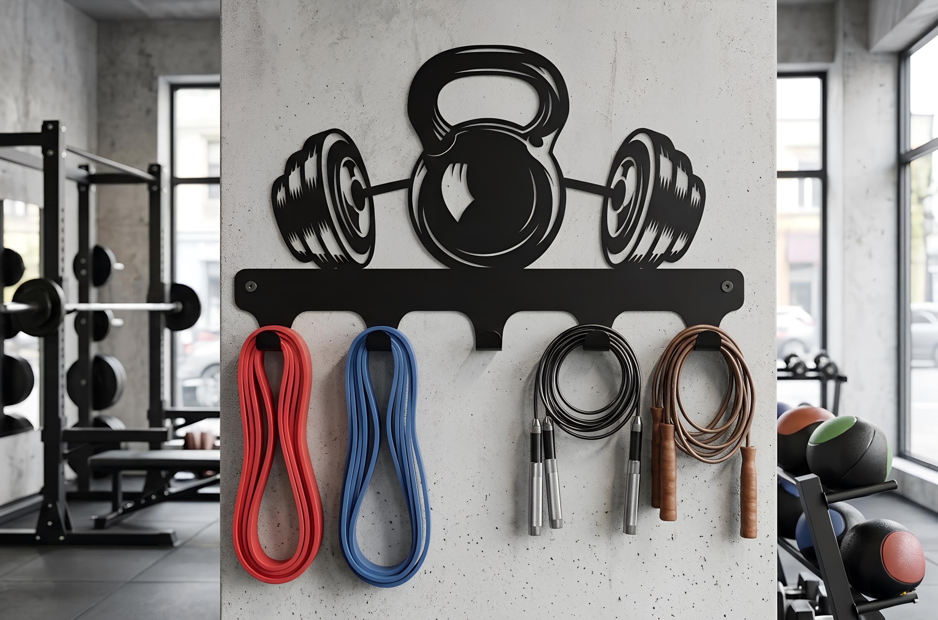This kettlebell-inspired wall organizer is designed to keep your gym essentials neatly stored and easy to access. Perfect for jump ropes, resistance bands, and everyday workout gear.