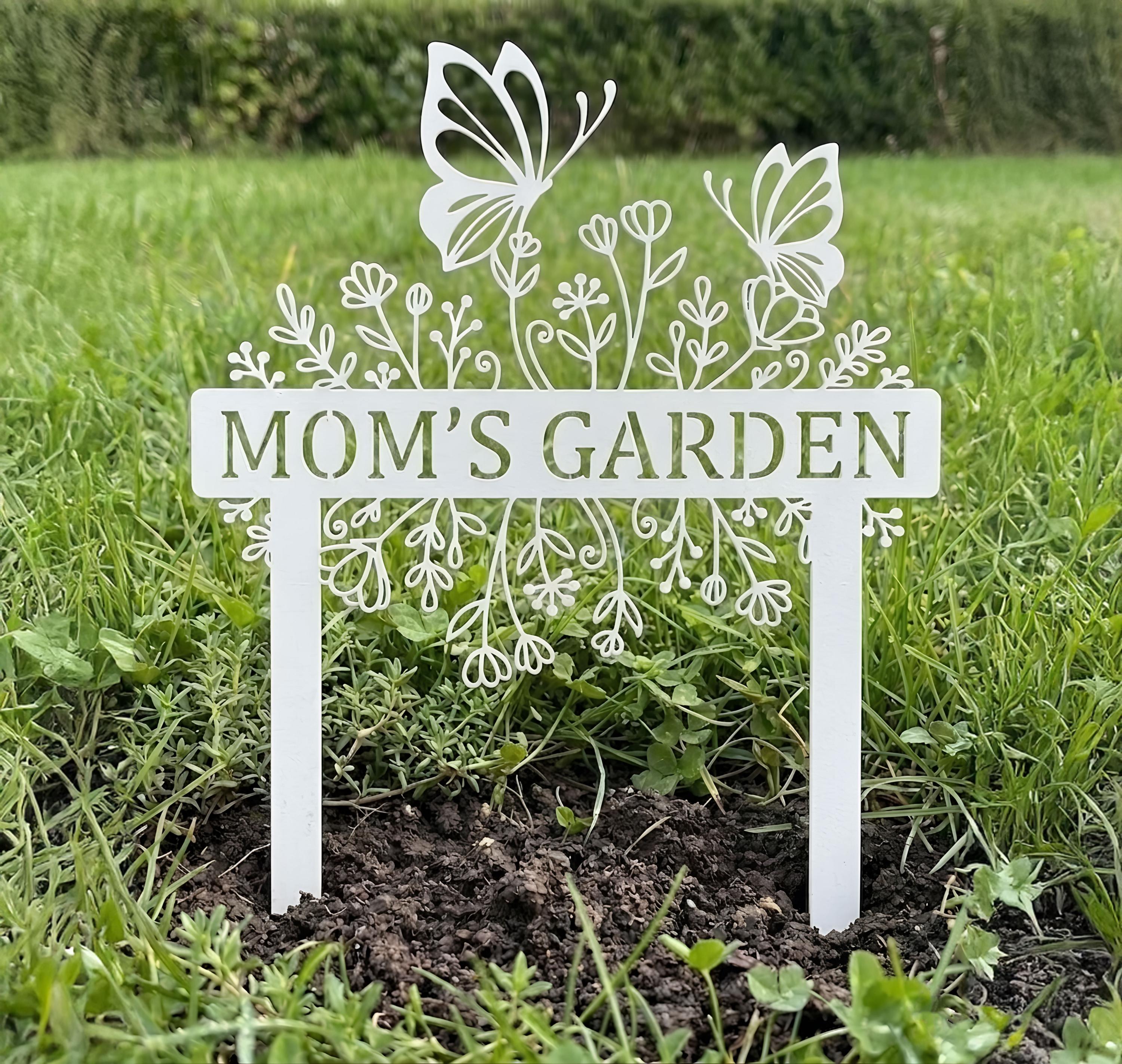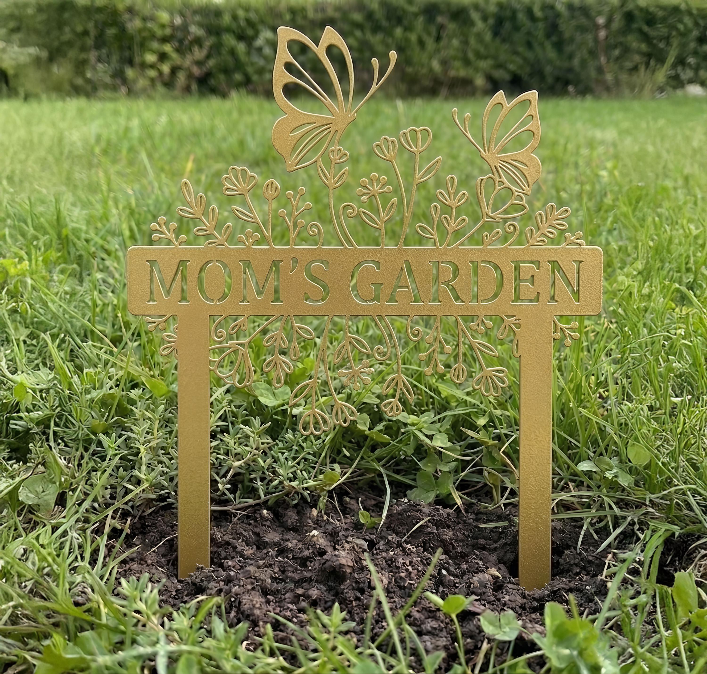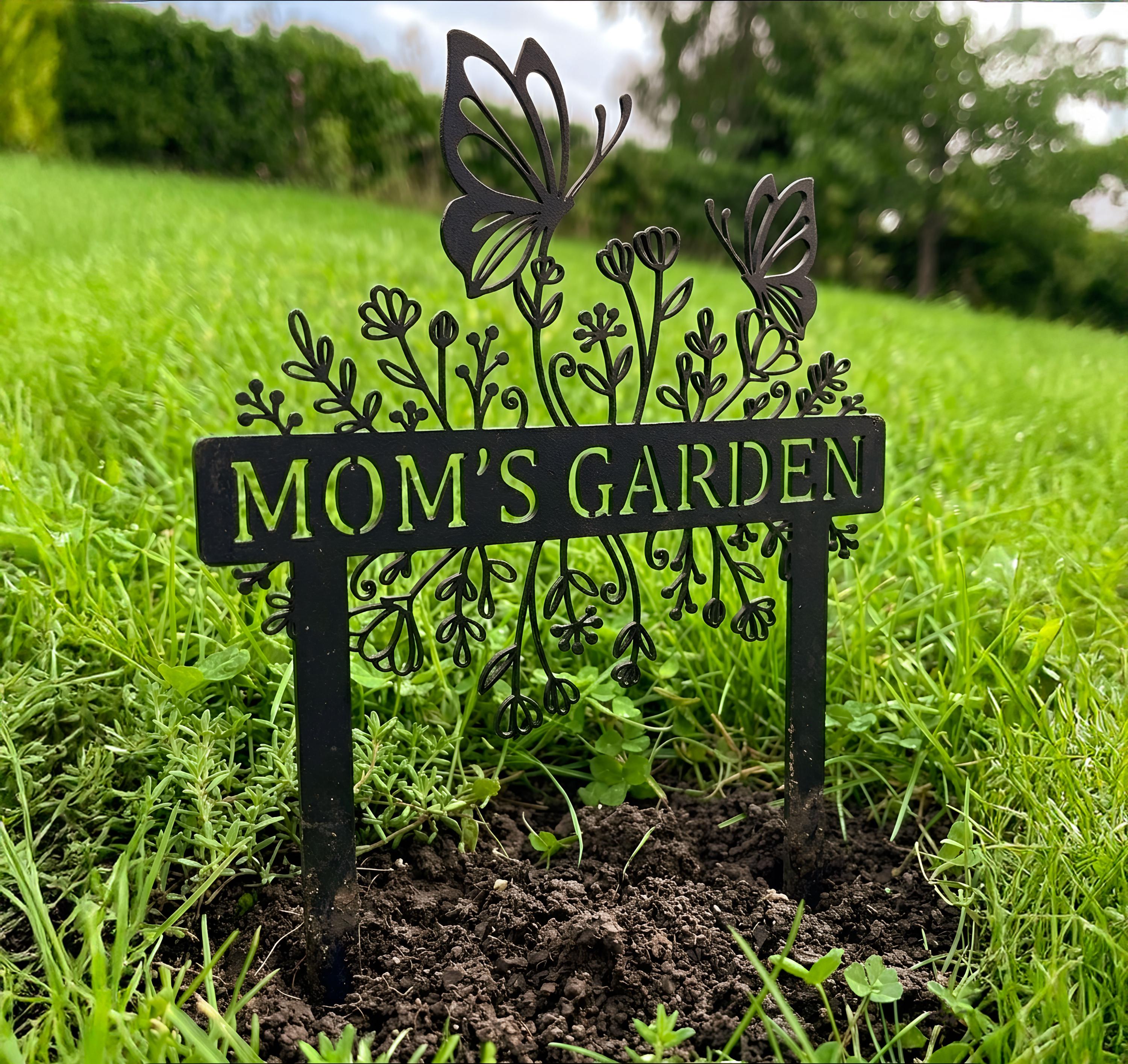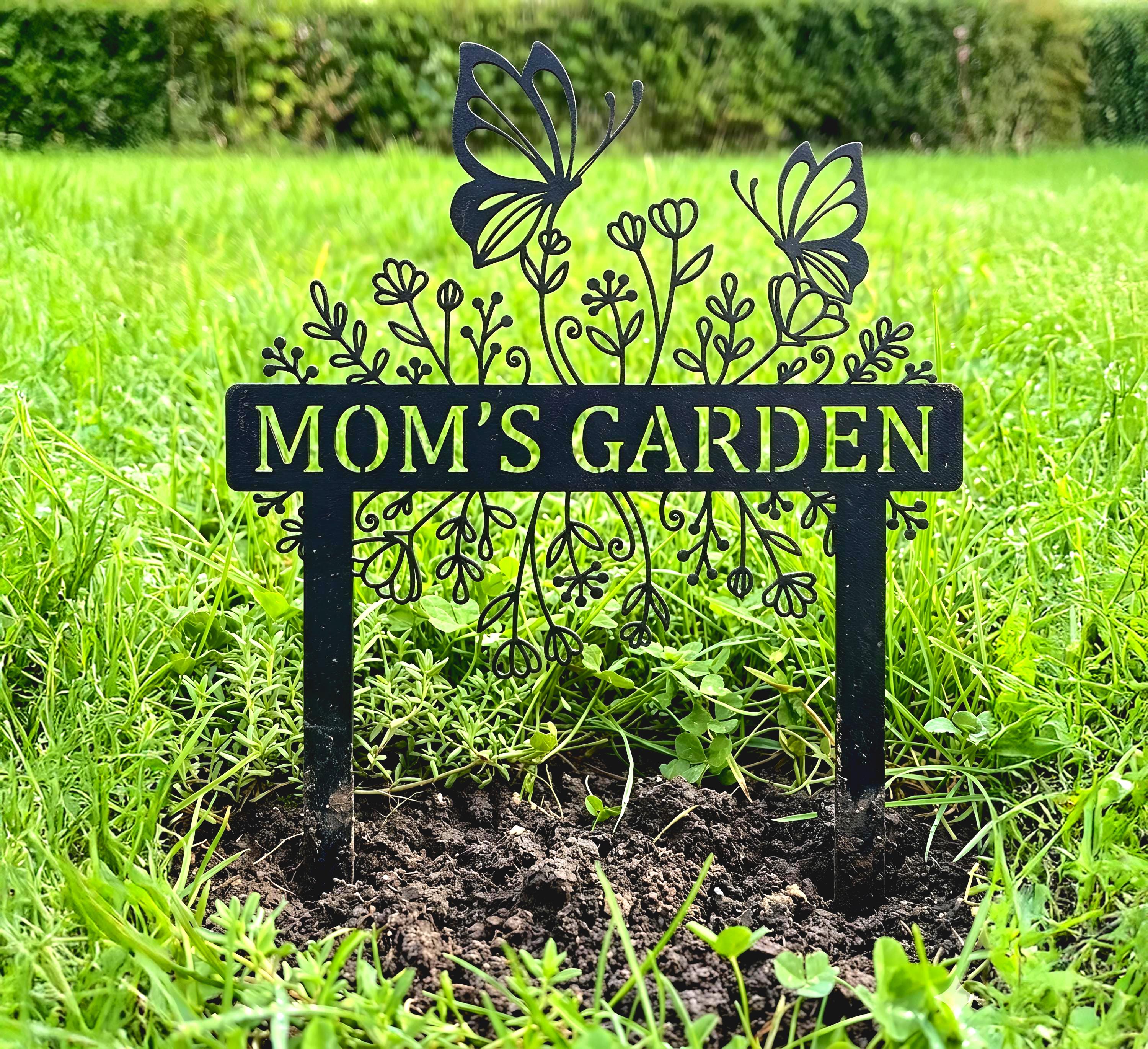 Celebrate your garden with this beautifully detailed butterfly garden sign. Featuring elegant floral elements and delicate butterfly accents, this custom metal stake can be personalized with your chosen name or phrase. Perfect for adding charm to gardens, flower beds, or yards. Crafted for durability and outdoor use, it makes a meaningful gift for moms, gardeners, and nature lovers. Ideal for Mother’s Day, birthdays, or housewarming occasions.
