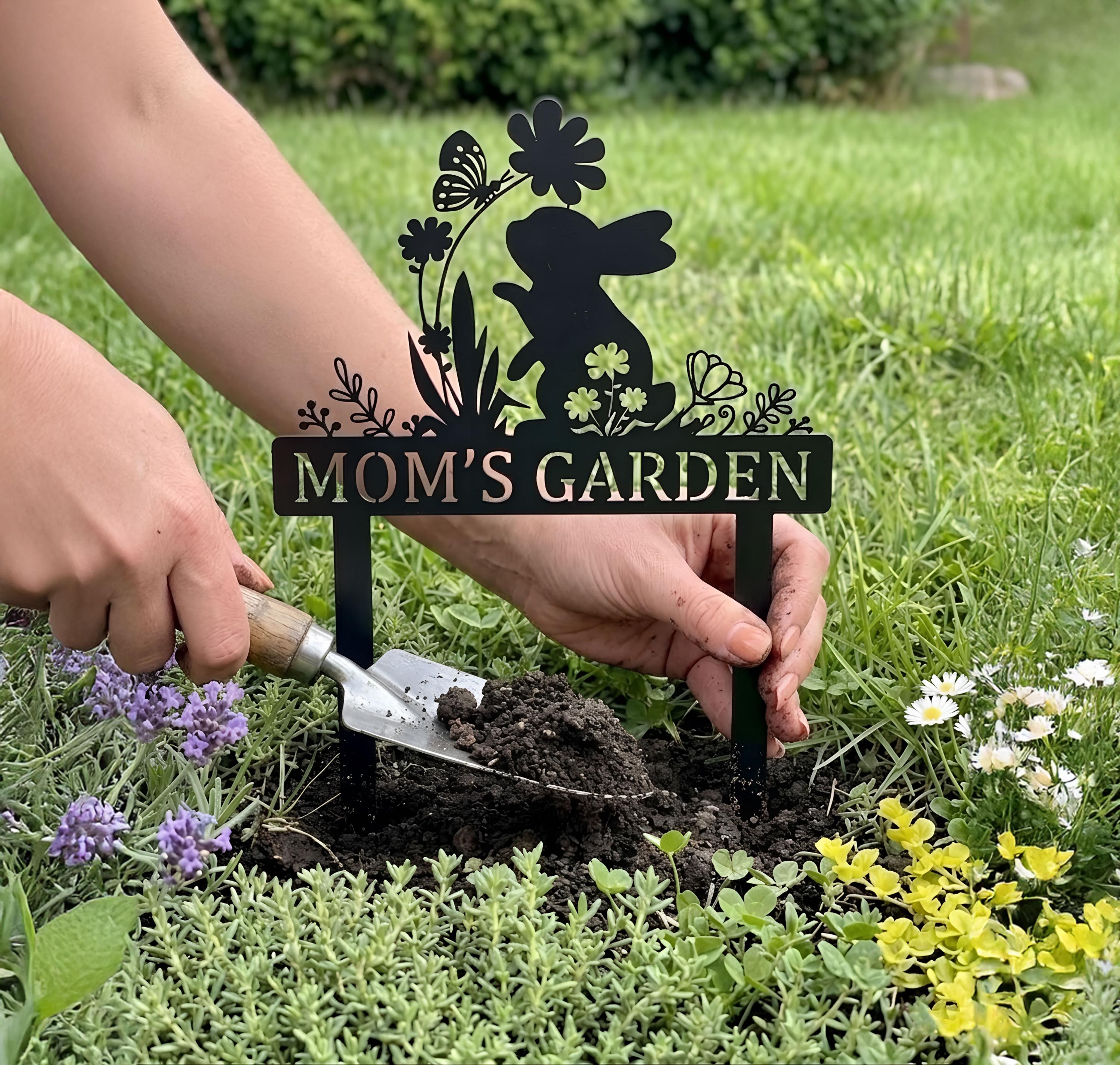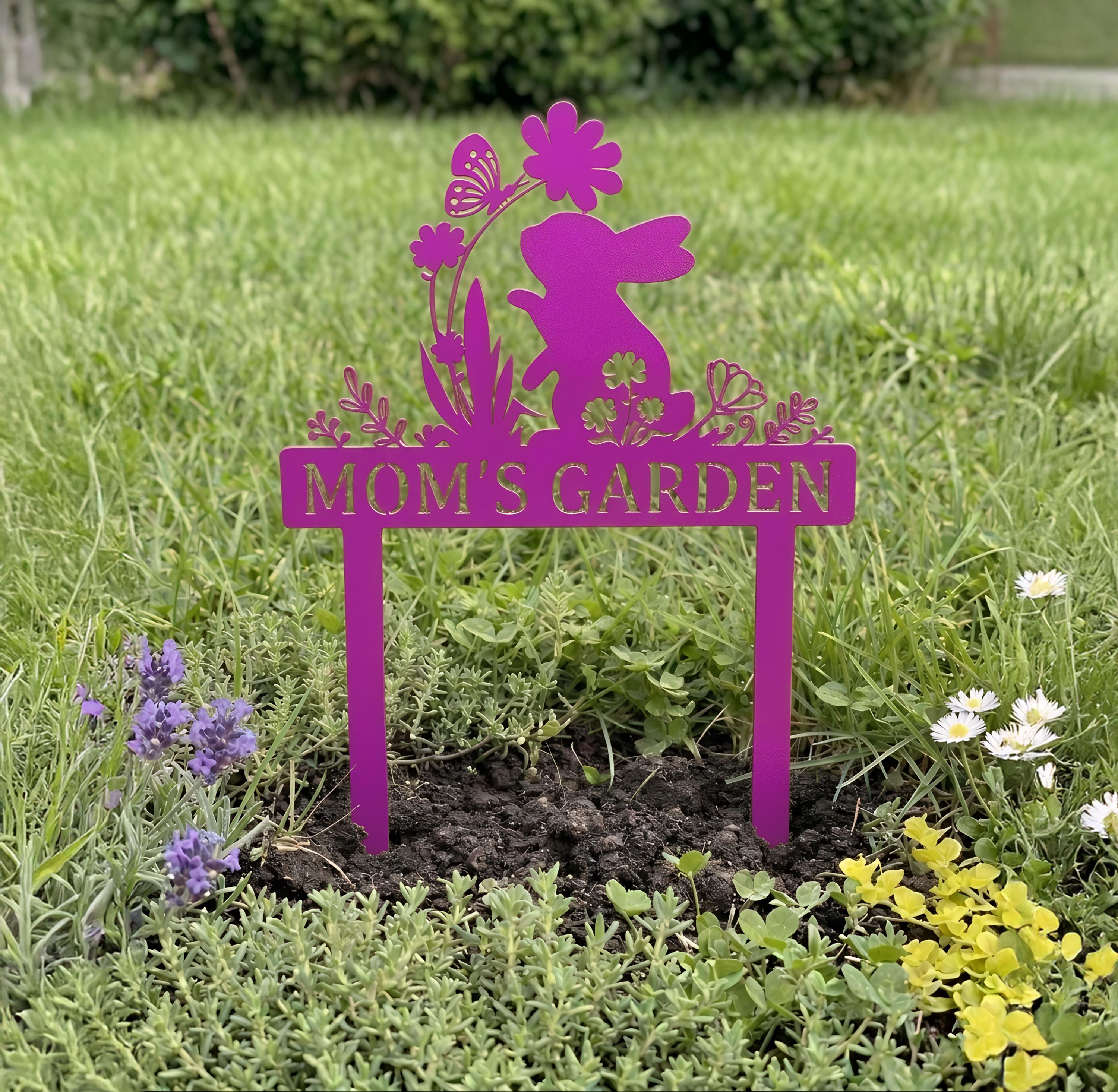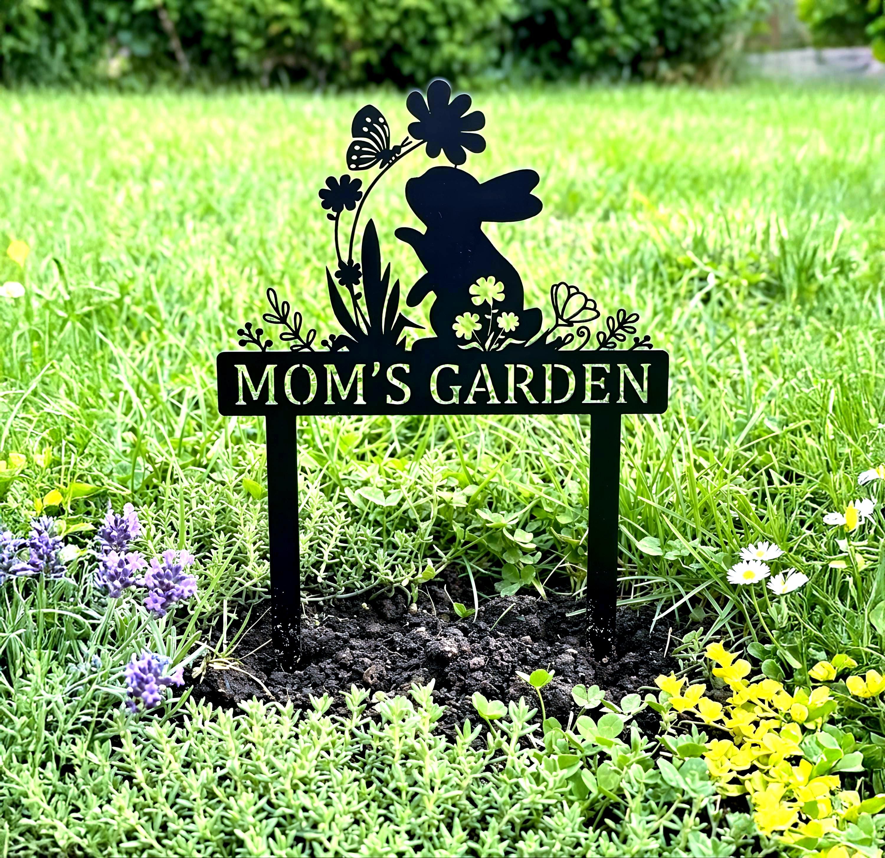 Add a charming touch to your garden with this adorable bunny garden sign. Featuring a cute rabbit surrounded by flowers and butterfly details, this custom metal stake can be personalized with your desired name or text. Perfect for spring decor, flower beds, and outdoor spaces. Crafted for durability and weather resistance, it’s a unique and thoughtful gift for moms, gardeners, and nature lovers. Ideal for Easter, Mother’s Day, or housewarming gifts.