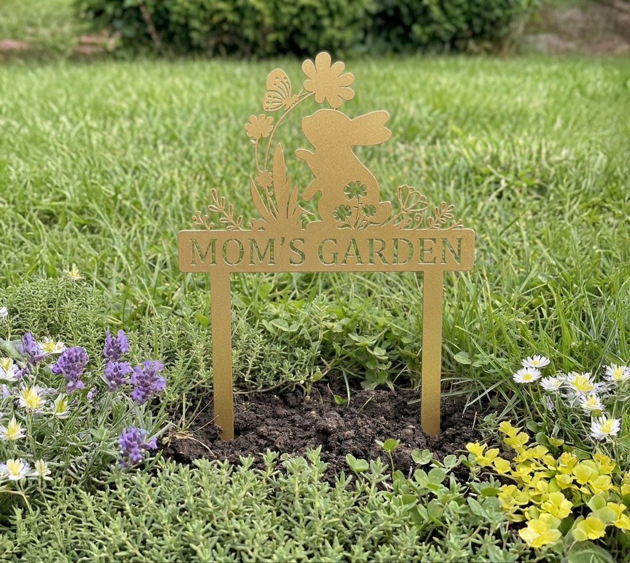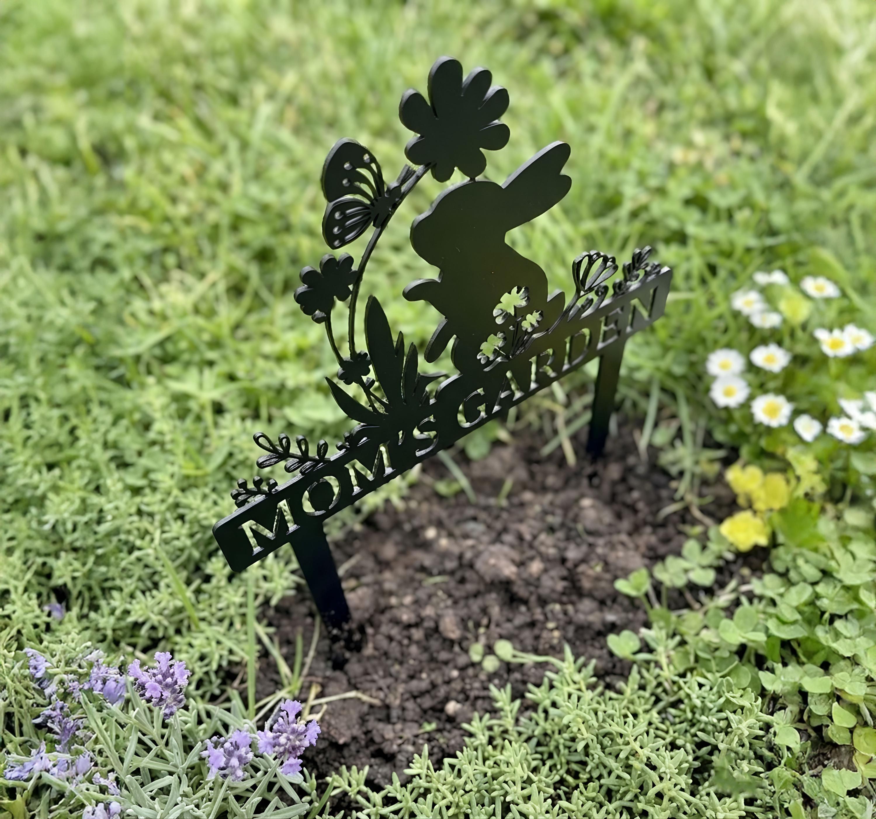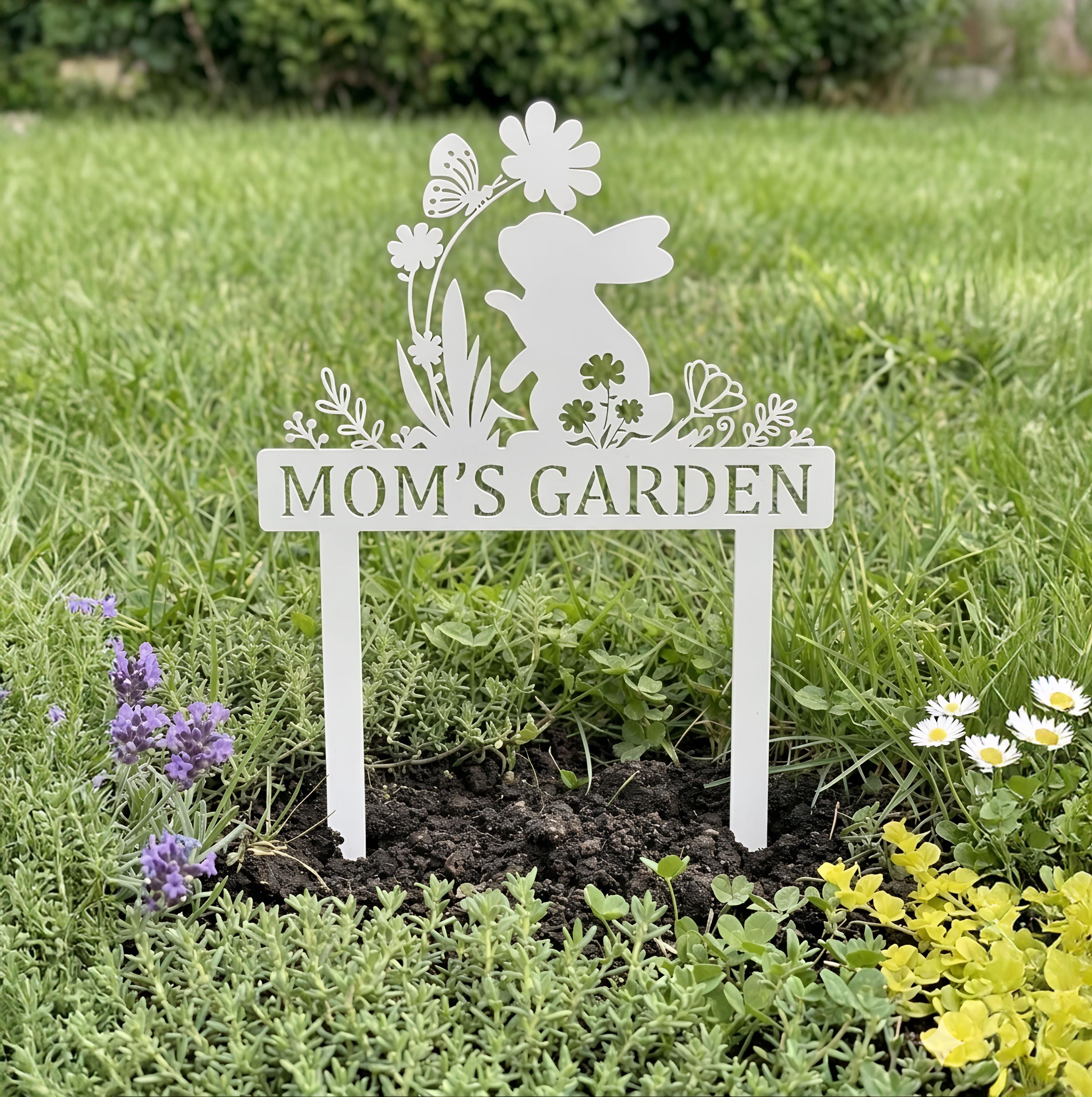 Add a charming touch to your garden with this adorable bunny garden sign. Featuring a cute rabbit surrounded by flowers and butterfly details, this custom metal stake can be personalized with your desired name or text. Perfect for spring decor, flower beds, and outdoor spaces. Crafted for durability and weather resistance, it’s a unique and thoughtful gift for moms, gardeners, and nature lovers. Ideal for Easter, Mother’s Day, or housewarming gifts.